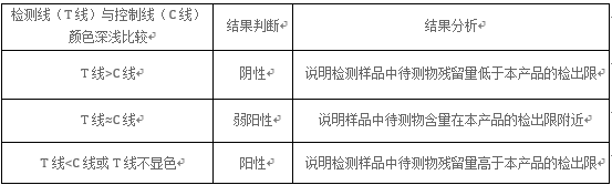 2、如果控制线(C线)和检测线(T线)均不显色,检测结果无效,建议重复测试一次。 3、如果控制线(C线)显色极弱,肉眼观察颜色极不明显,但检测线(T线)显色正常,建议使用读数仪判读。 Ø 若读数仪能正常读出数据,结果依旧判为阴性; Ø 若读数仪无法正常读出数据,表明C线完全不显色,检测结果无效,建议重复测试一次。 (二)读数仪判读 1、读数仪的具体操作步骤,请参照读数仪的使用说明书。 2、阴性结果R>1.1,弱阳性结果 0.9≤R≤1.1,阳性结果 R<0.9。 (三)判读示意图